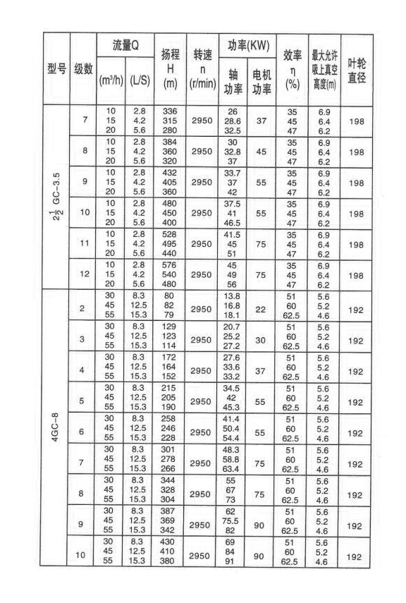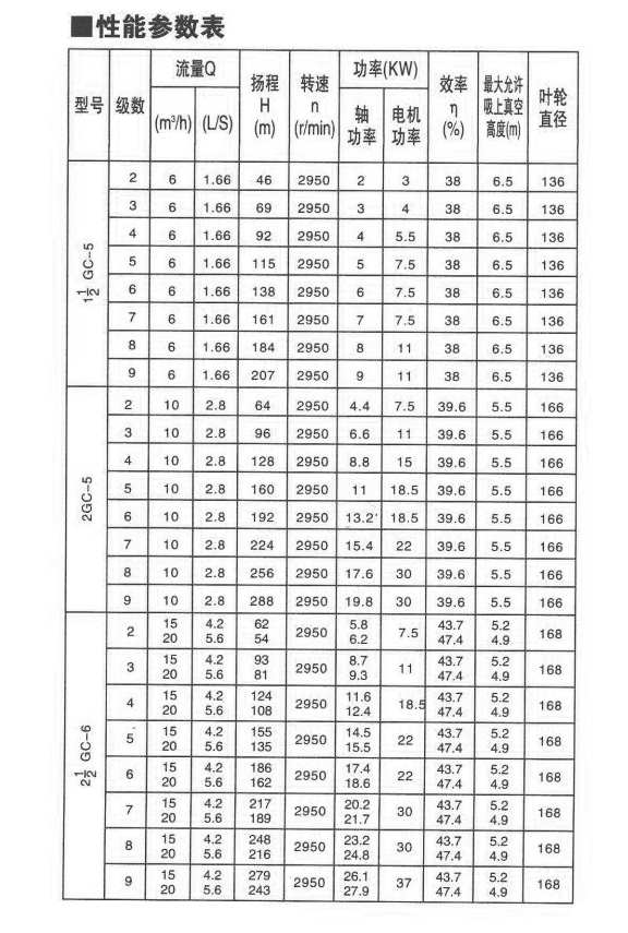 GC型水泵為單吸多級(jí)離心泵,可輸送最高溫度為110℃清水或物理化學(xué)性質(zhì)類似清水的液體之用,適用于鍋爐給水、工廠、城市及礦山井下提水排水。揚(yáng)程為46米至476米,流量為6米3/小時(shí)一55米3/小時(shí)。