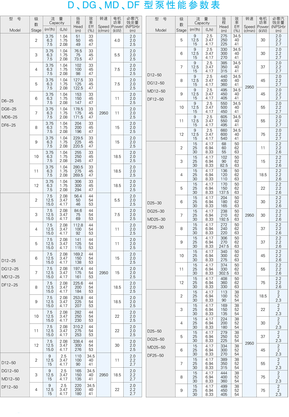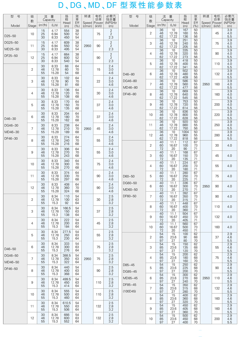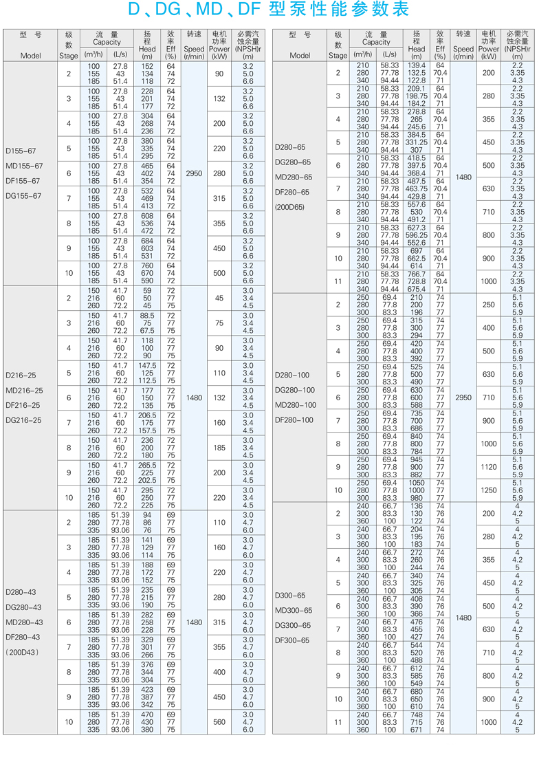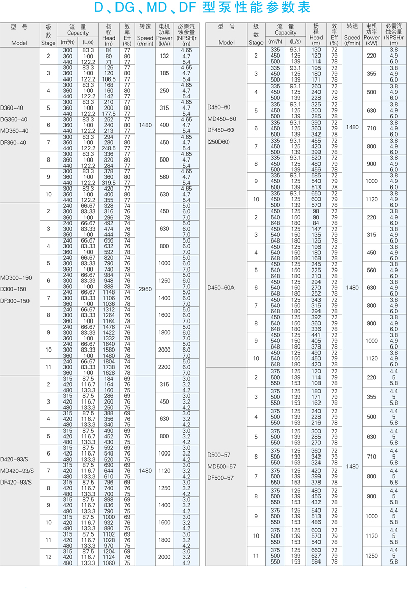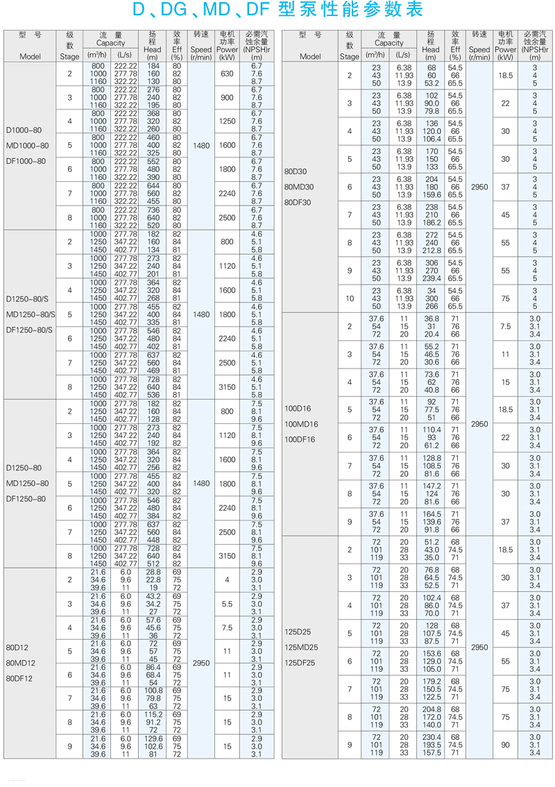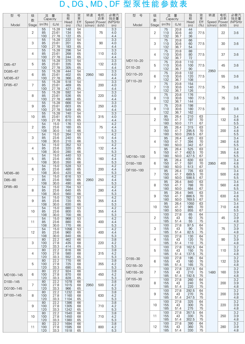 N型冷凝水泵主要供火力發(fā)電廠輸送冷凝水之用,亦可用在介質(zhì)與冷凝水相似的其他地方。本泵有較好的吸入性能?!?00N130和150N110型泵可輸送120℃以內(nèi)的液體,其他泵輸送液溫不能超過80℃?! ?00N130和150N110型泵分別在填料函體和填料壓蓋處通入冷卻水后可作流水泵用。 參數(shù)范圍 流量范圍:8~120m3/h 揚程范圍:38~143